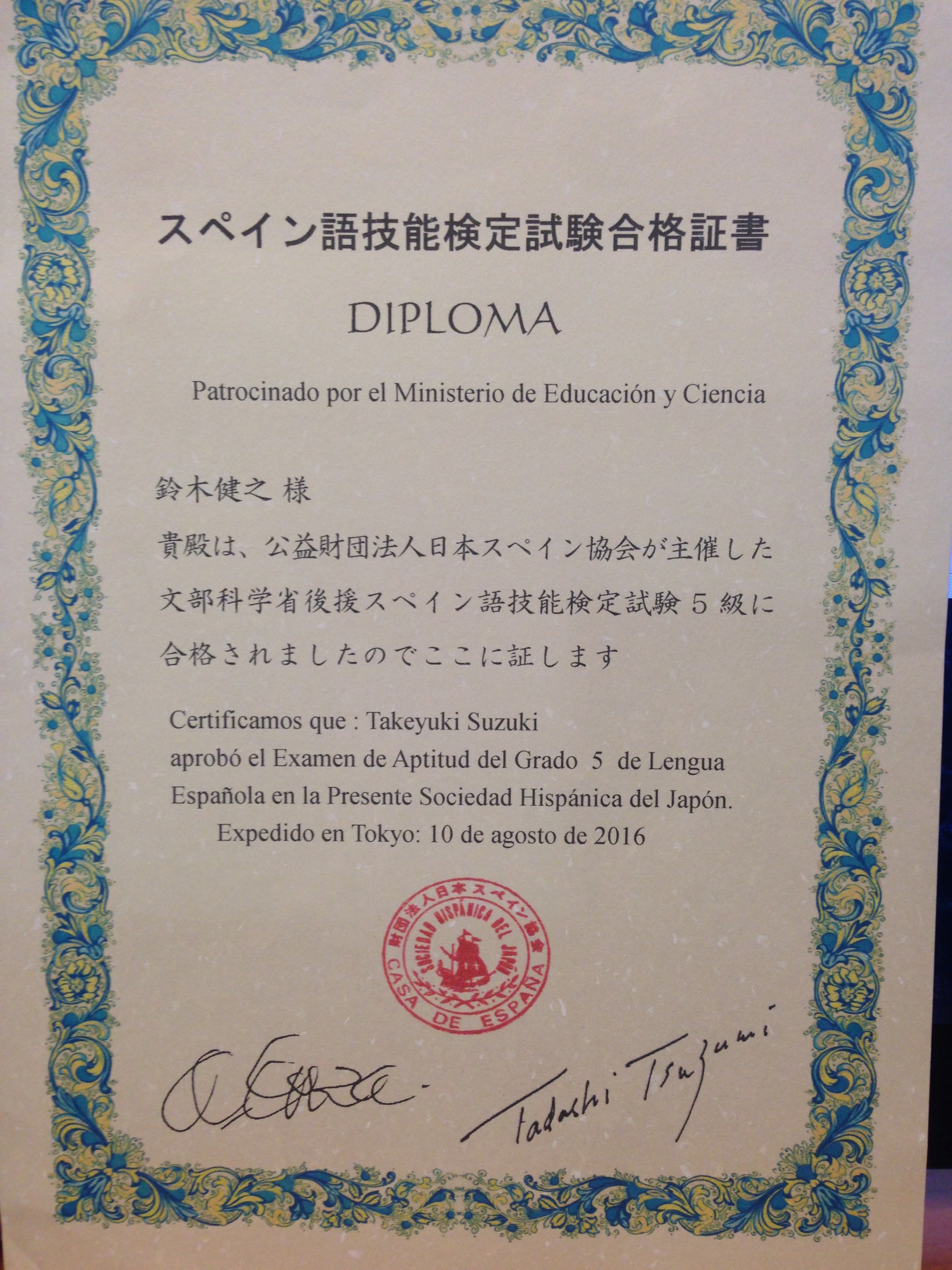 スペイン語検定5級に合格!